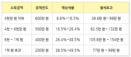 - 소득공제: 바로 그 "소득금액"에서 공제액만큼을 추가로 빼주겠다는 뜻입니다.